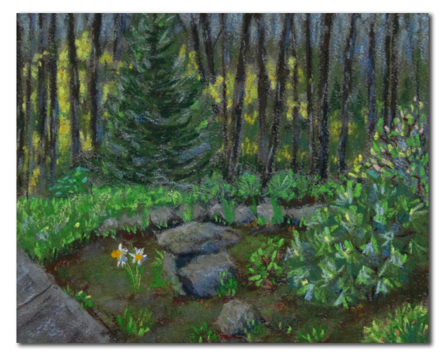 Path Through the Ferns #3, 8x10 pastel on Grey Canson